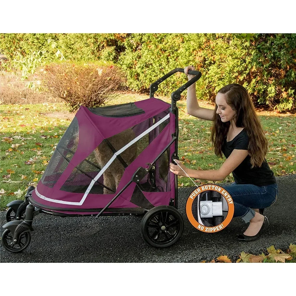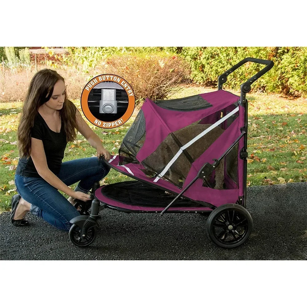 - Dual-entry, pet can be loaded from the front or rear entry, does not have to turn around to exit the stroller