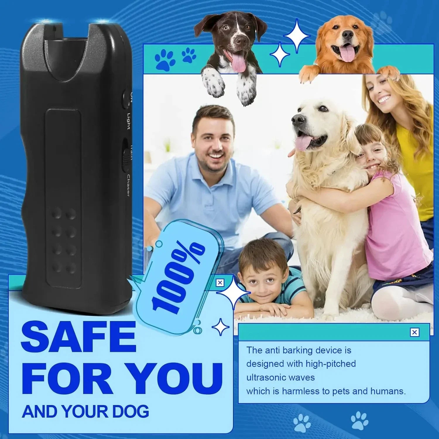 1. The barking control device is a safe and effective training tool, dog barking control devices is very safe for dogs, use normal sound and ultrasonic dog whistle, and are harmless to dogs.